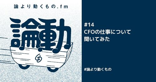 CTO 藤村がホストするPodcast、論より動くもの.fmの第14回を公開しました。今回はCFO 齋藤と共に、CFOの仕事とエンジニアとアートの共通点について話しました。 論より動くもの.fmはSpotifyとApple Podcastで配信しています。フォローしていただくと、新エピ…