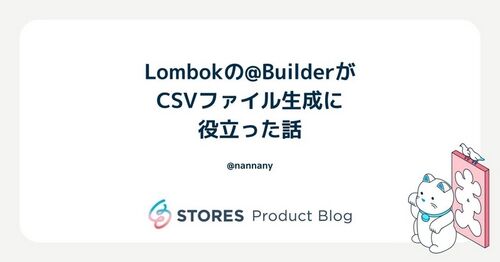 概要 こんにちは。STORES 決済でJavaエンジニアをしているnannanyです。 今回はファイル生成処理に使ってみて便利だった、Lombokの@Builderのオプション機能を紹介していきます。 説明しないこと Lombokの@Builderのオプション機能に焦点を当てるので、 そも…