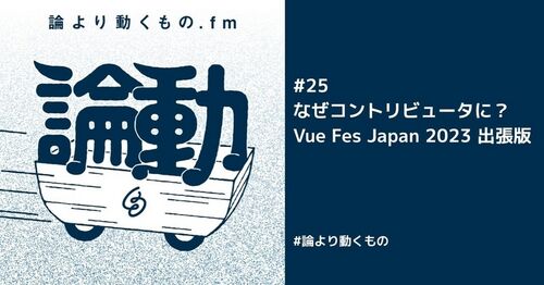 CTO 藤村がホストするPodcast、論より動くもの.fmの第25回を公開しました。今回はVue Fes Japan 2023のスペシャルランチセッションで公開収録をしました。ゲストは、Vue Fes Japan 2023で登壇したwattanxです。 論より動くもの.fmはSpotifyとApple Podcastで…