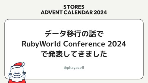 テクノロジー部門リテール GTM B グループの @phayacell と申します。 RubyWorld Conference で発表してきましたので、その報告投稿としての STORES Advent Calendar 2024 7日目の記事です。 どんな発表してきたの? 以下の発表をしてきました。 speakerdeck…