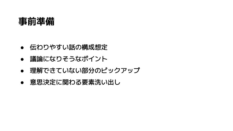 初動でポイントが抑えられていないとMTGがグダグダになったり仕切りなおしになったり認識ズレがおきたりします。
