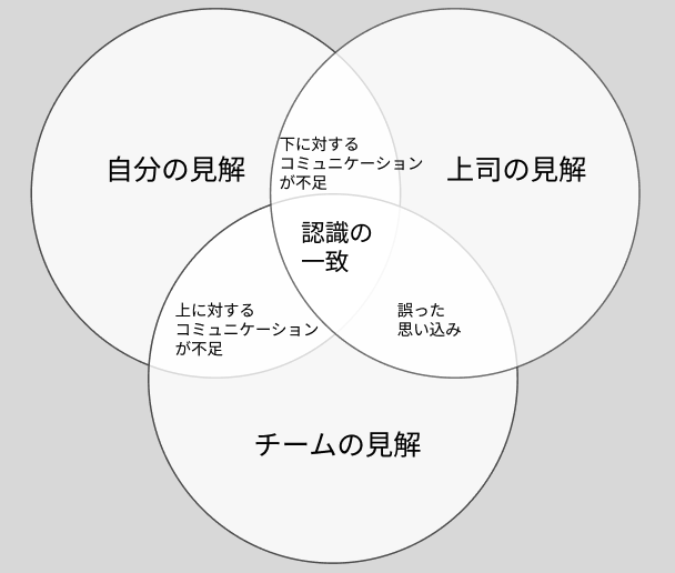 「O'Reilly Japan - エンジニアリングマネージャーのしごと」という書籍の中で、 1on1 を通じて 「自分の見解」「チームの見解」「上司の見解」のスナップショットを作成しよう という項目があるのですが、このイメージが近いです。