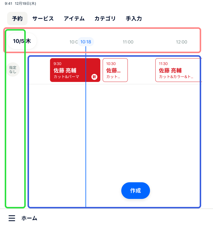 私たちはレジ・予約の連携機能の1つとして、スタッフが縦に並びスタッフごとに予約を表示する機能を実装しました。
