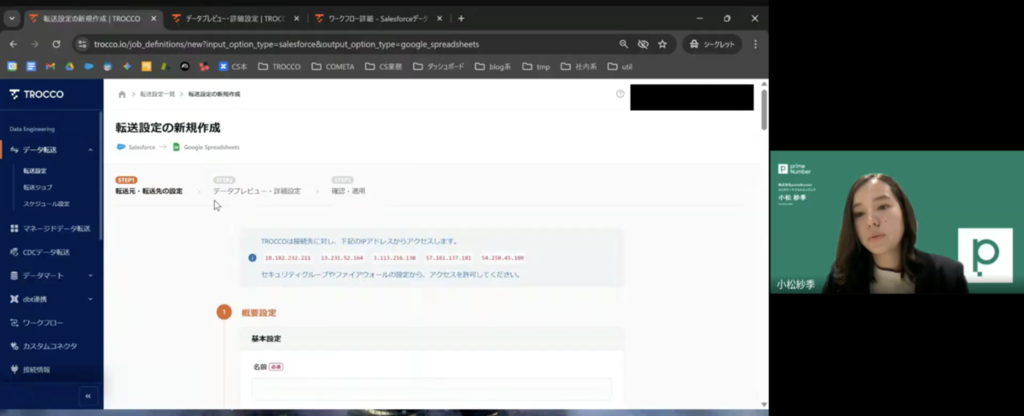 ビジネス部門へのTROCCO導入にあたっては、TROCCOの開発販売会社であるPrimeNumber様にご協力いただき、Salesforceおよびkintoneを題材としたレクチャー会をビジネス部門向けに開催していただきました。